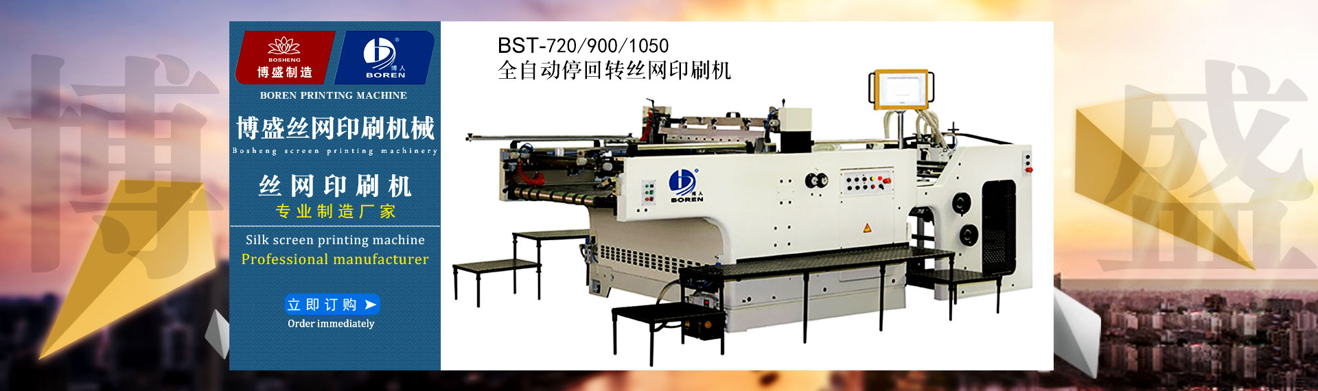 瑞安市博盛絲網(wǎng)印刷機(jī)械廠是一家專業(yè)集生產(chǎn)加工,經(jīng)營批發(fā)的私營獨(dú)資企業(yè)。制造各類全自動絲網(wǎng)印刷機(jī)、卷對卷全自動(無紡布)網(wǎng)印機(jī)、全自動卷筒式網(wǎng)印橫切一體機(jī)、半自動平升式、斜臂式微電腦控制精密網(wǎng)印機(jī)、紫外線(UV)光固機(jī)、絲印真空曬版機(jī)、烘版機(jī)、熱風(fēng)烤(烘)箱、組合式(IR)紅外線烘道、機(jī)械式精密... 查看詳情>>